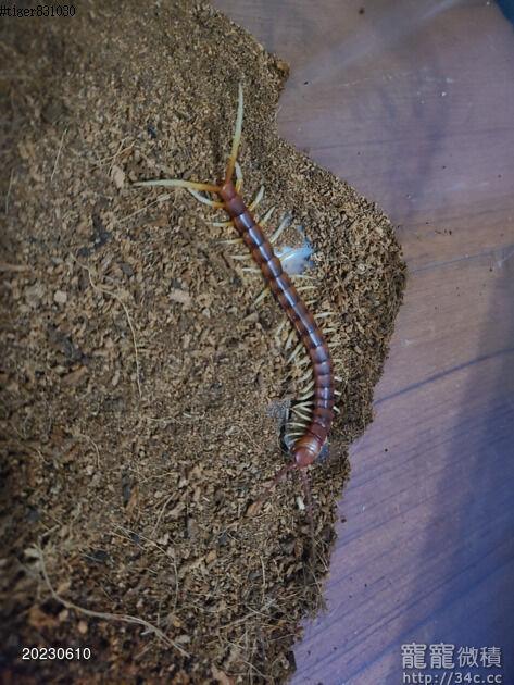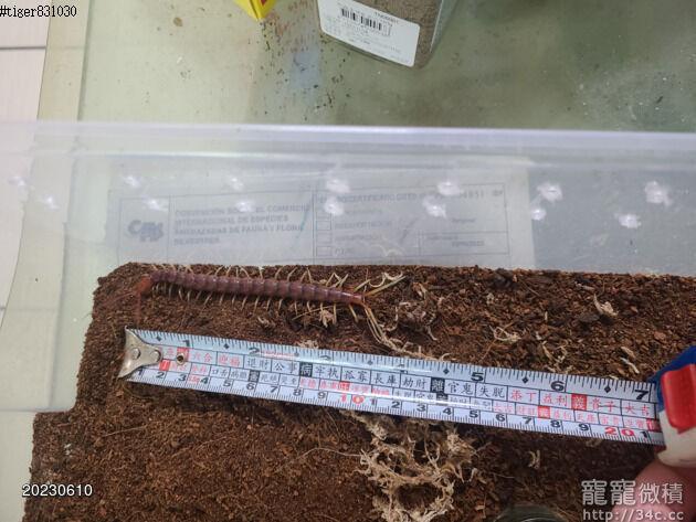 成體可長到30~38cm 蜈蚣請勿上手 請勿上手 請勿上手 屬於觀賞型寵物 有毒性 請不要上手 祕魯巨人蜈蚣(學名:Scolopendra gigantea)是世界上最大的蜈蚣。棲息於南美洲與加勒比地區,平均長度為30公分(12英寸)[1],有的個體甚至能長到38 cm(15英寸)[2]。以節肢動物、兩棲類、哺乳動物與爬蟲類為食[3]。
