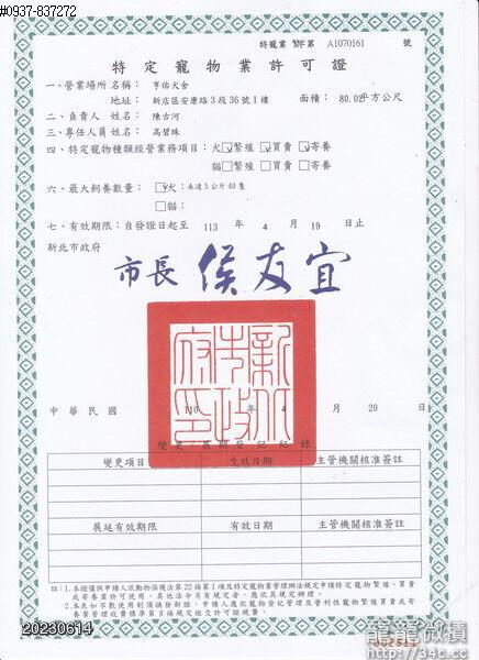 特寵業繁字第A1070161號