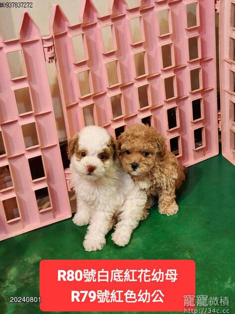 頂級巧克力紅花色貴賓幼犬+頂級黑白花貴賓幼犬 ( 達菲熊貴賓犬 )