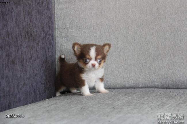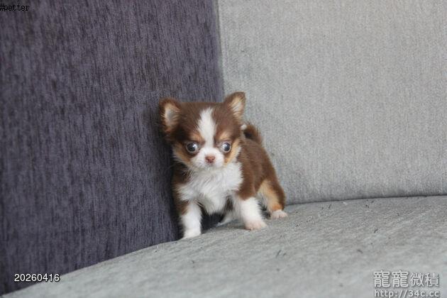 2/7出生 高端優質小茶杯長毛吉娃娃巧克力領巾弟弟(4/15拍攝)