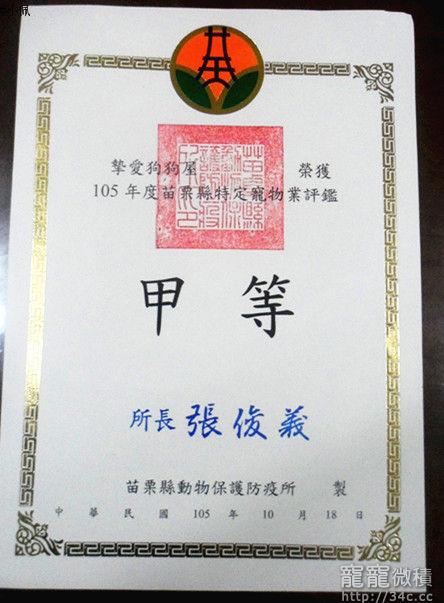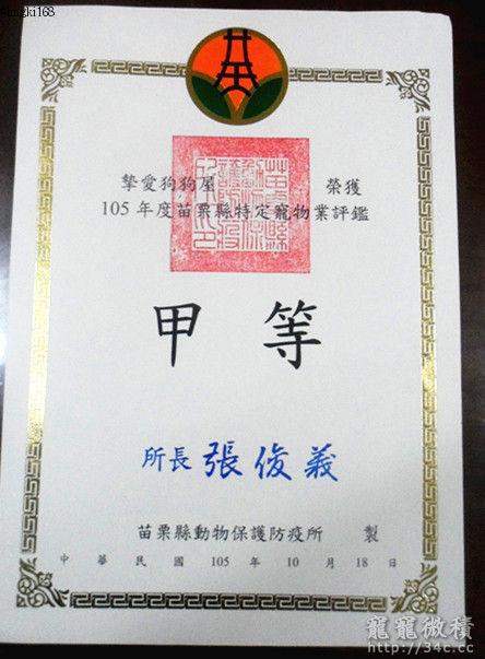 賀~~摯愛狗狗屋105年寵物業評鑑甲等~~