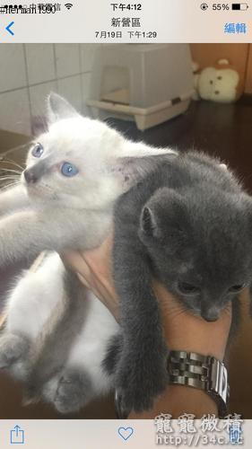 第一胎的俄羅斯藍貓媽媽生第一隻就是白色的公貓喔6/8號出生目前兩個多月