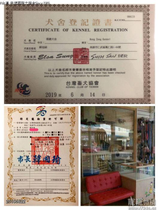 犬登:台內社第0940020509-編號3709(台灣-榮總犬舍Since1989成立)