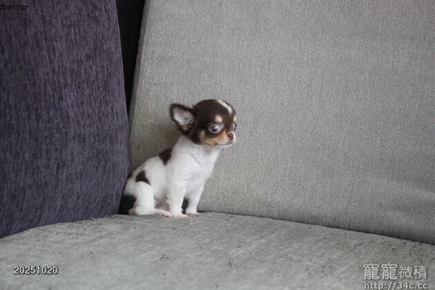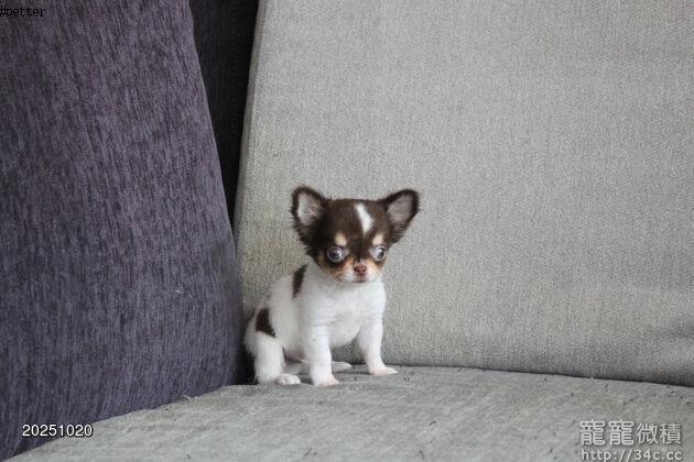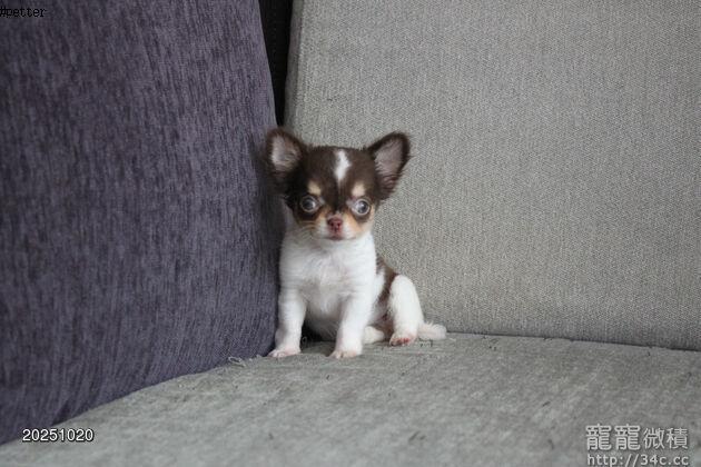 7/23出生 高端優質茶杯長毛吉娃娃巧克力白花妹妹(10/20拍攝)