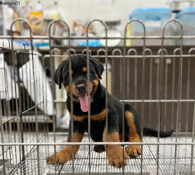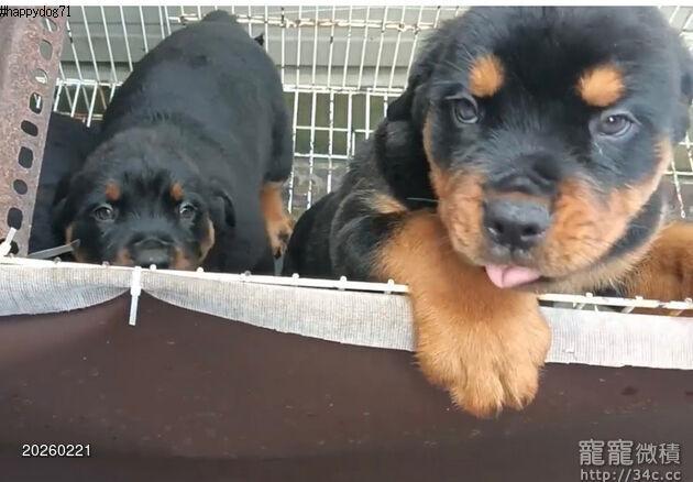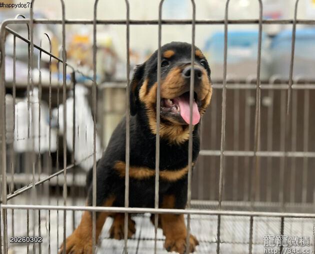 ◆快樂狗幼犬生活館◆王者之風◆帝王血統體態超優黑四目鐵包金羅威納犬幼犬出售◆rottweilerPUPPY FOR SALE◆羅威納犬聰明懂事,個性沉穩,對主人絕對忠誠,它善於分辨善惡是非,聽從口令,服從主人指揮。羅威納堅韌沉穩、自信。牠喜歡時時刻刻都能看到家人,所以羅威納犬會緊緊跟隨男女主人在房間走來走去。羅威納犬訓練難易度一般,要在幼犬時就嚴格調教它,否則成年後主人很難控制,在國外曾有過羅威納犬傷人的記錄。只要認真調教,它也能是安靜的伴侶犬。羅威納犬和小孩相處融洽,也非常喜歡和小朋友一起玩。當然,這是由小孩的個性和狗的性情共同決定的,因為羅威納對惡意的入侵者十分兇猛,特別適合作為護衛犬。 因有店面經營店務繁忙,歡迎電洽詢問~以獲得第一手資訊!! 電話 : 0958707797 市話:06-3038693 line : @puppyandme 本店地址 :台南市永康區中華路677號 直接點擊↓↓↓下圖↓↓↓可連結臉書粉絲專頁查看 店面資訊 與 最新消息!
