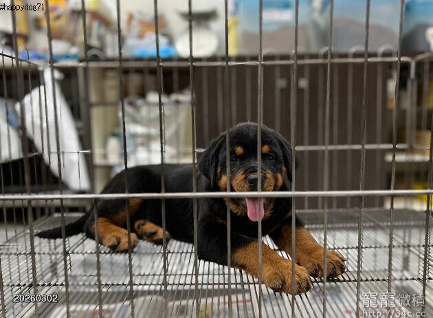 頂級鐵包金四目羅威那幼犬稀有釋出 大型犬的愛好者要把握機會呀! 肌肉發達 體態結實 色系出眾 骨架姣好 !! 各方面優勢心照不宣 歡迎多多比較 !! 妹妹:限時特價NTD30000!