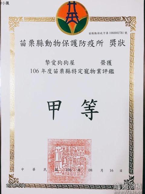 106年寵物業評鑑及環境榮獲甲等