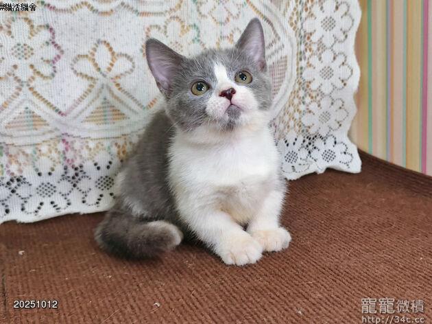 【找家中】114/08月出生:《立耳 曼赤肯短腿母貓》藍白