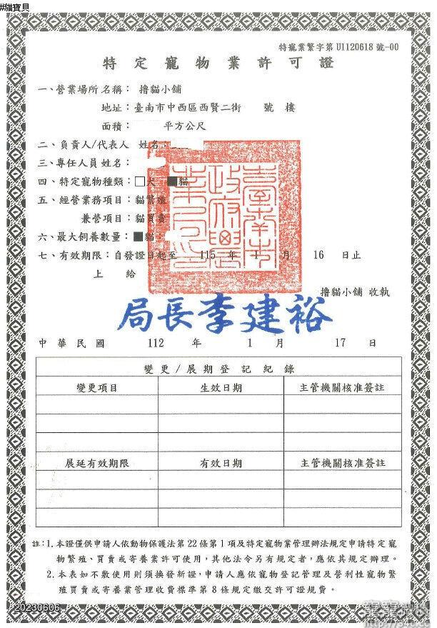 撸貓小舖 寵登字號 :特寵業繁字第U1120618號